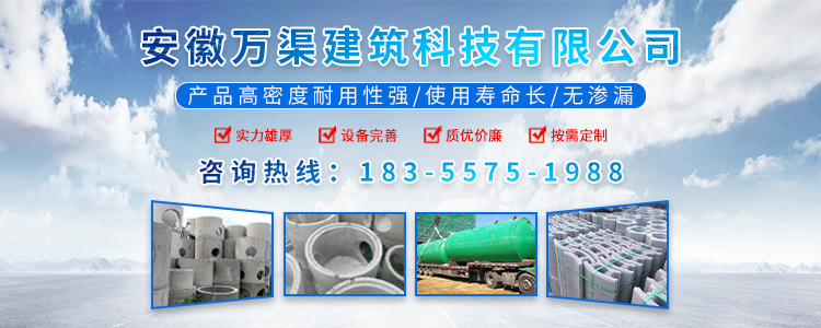 安徽萬渠建筑科技有限公司是集研發,生產制造,市場推廣為一體的綜合性企業。公司主要經營環保型預制鋼筋混凝土裝配式組合型檢查井和蓄水裝置等城建配套產品。產品生產過程采用獨特的生產工藝,機械化流水作業。產品大規模生產,生產效率高,耗能少,成本低,產品使用壽命長、免維護、無滲漏、無污染,符合“綠色環保,低碳節能”的發展要求,是傳統磚砌井池的理想替代產品。